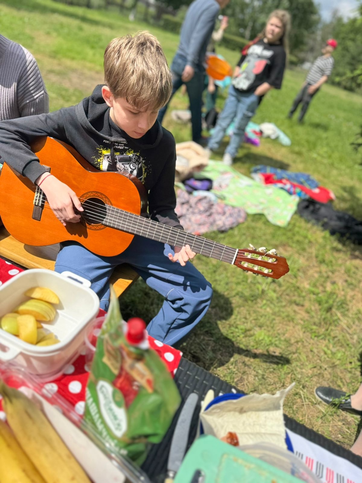 После трапезы ребята поиграли в подвижные и интеллектуальные игры, беседовали по душам. А желающие могли исполнить песни: благодарим наших гитаристов Максима, Павла и Светлану Васильевну.